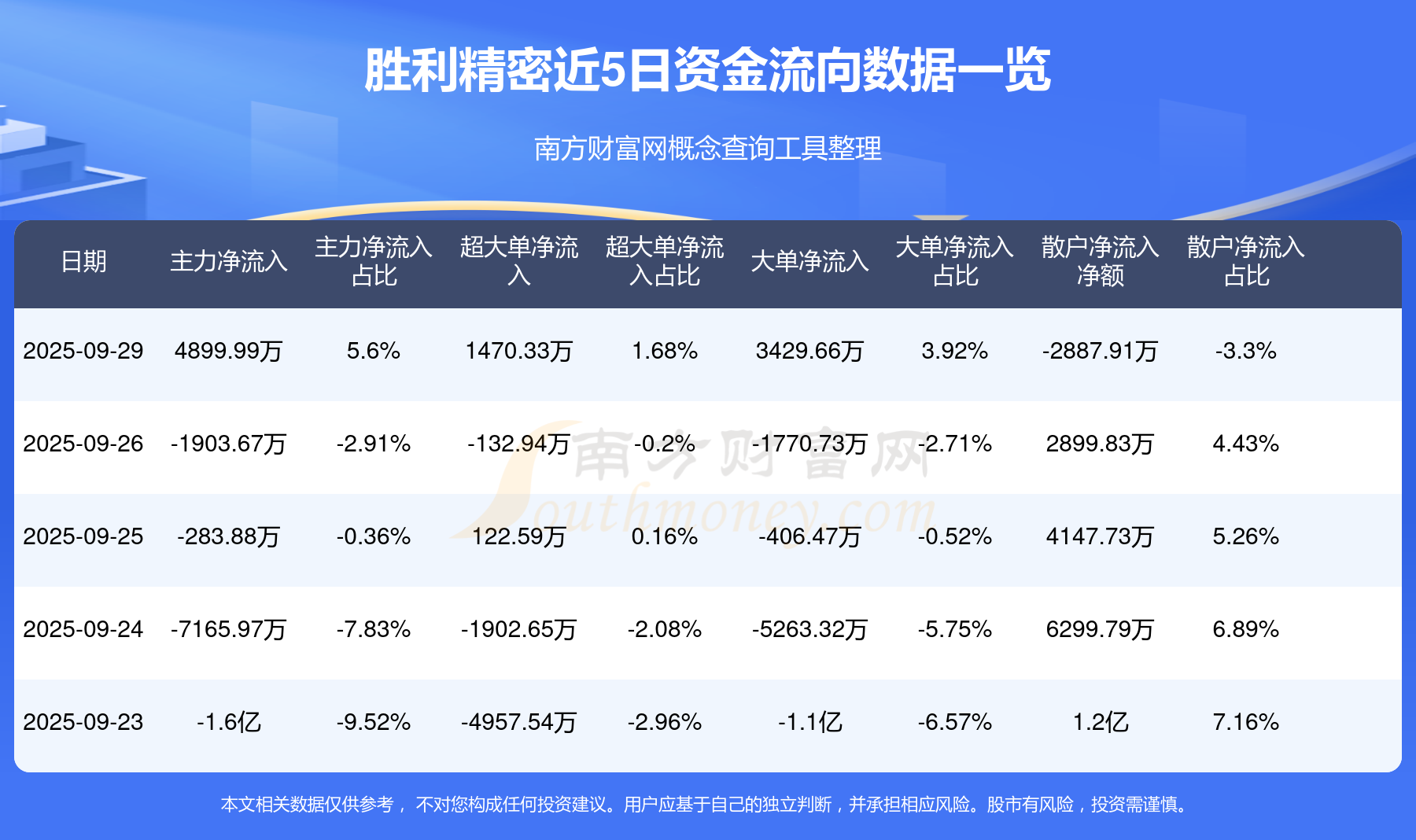 近5日資金流向一覽見下表: