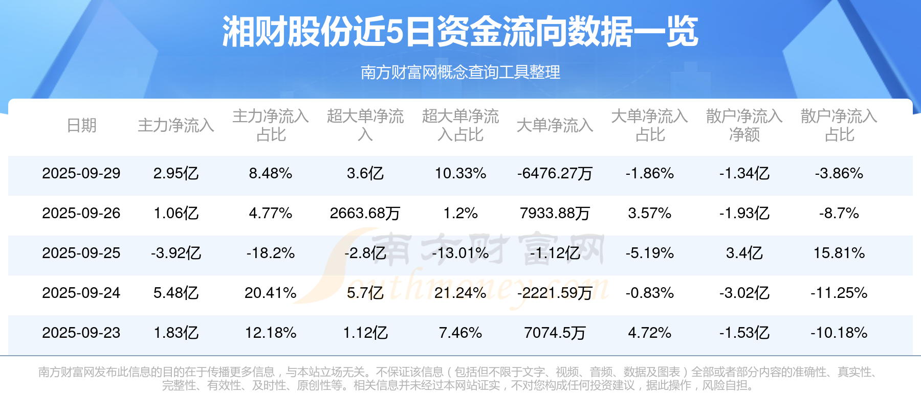 9月29日消息,湘財股份資金凈流入2.95億元,超大單資金凈流入3.6億元,換手率9.04%,成交金額34.48億元。