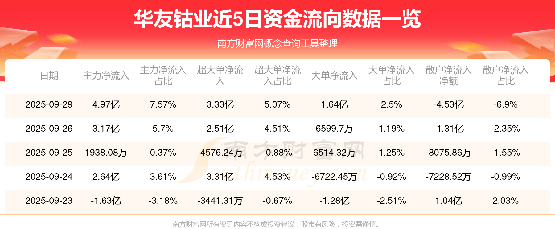 近5日資金流向一覽見下表: