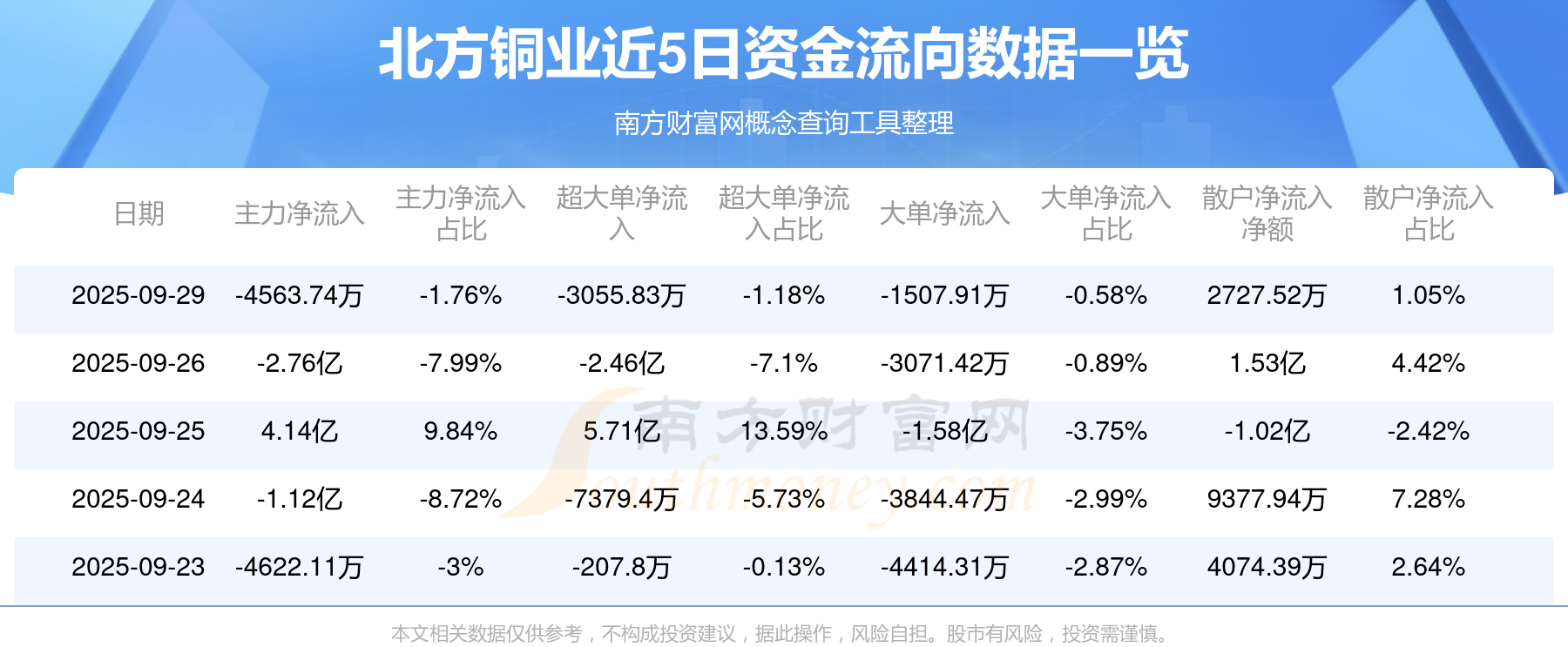9月29日消息,北方銅業(yè)9月29日主力凈流出4563.74萬元,超大單凈流出3055.83萬元,大單凈流出1507.91萬元,散戶凈流入2727.52萬元。