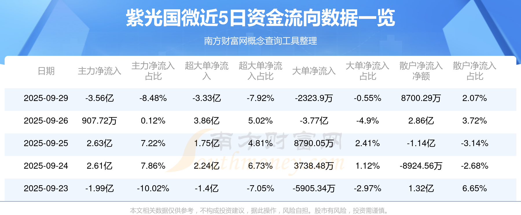 9月29日消息,紫光國微主力凈流出3.56億元,超大單凈流出3.33億元,散戶凈流入8700.29萬元。