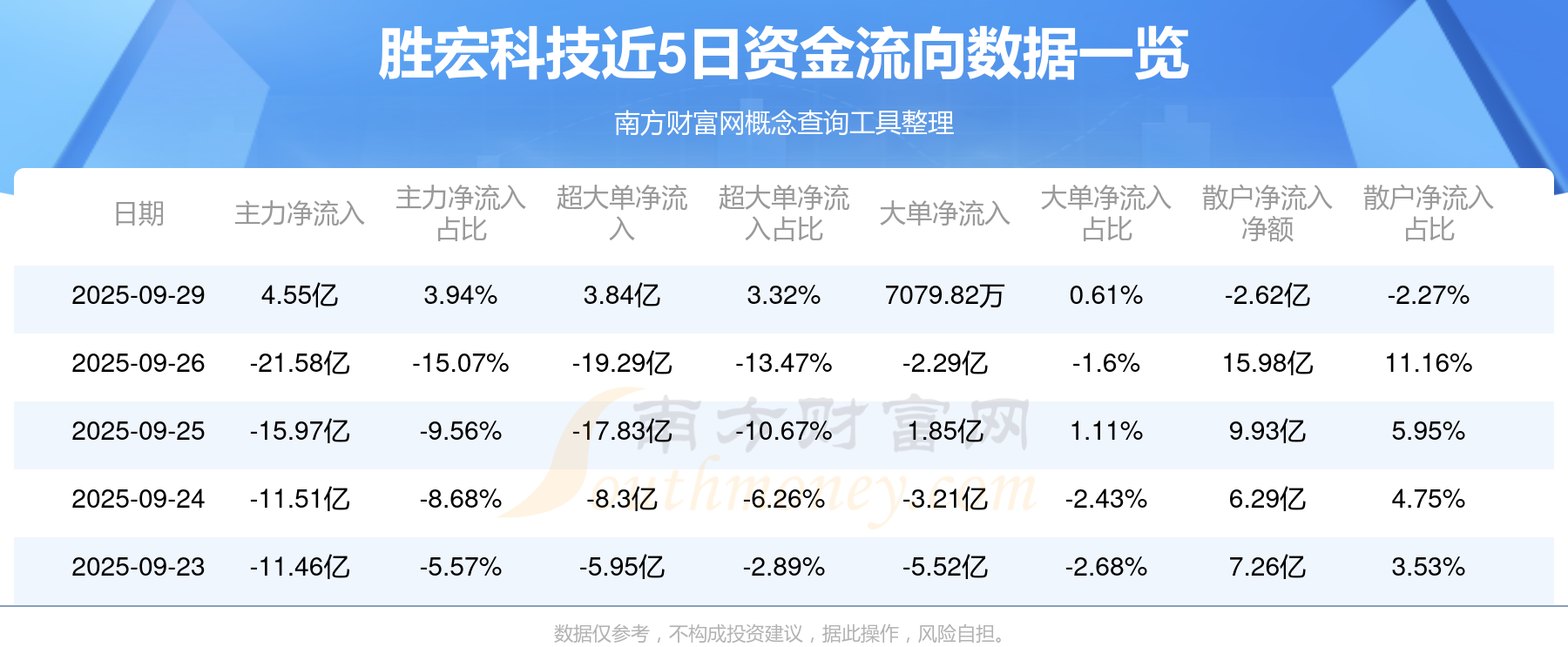 9月29日消息,勝宏科技9月29日主力資金凈流入4.55億元,超大單資金凈流入3.84億元,大單資金凈流入7079.82萬元,散戶資金凈流出2.62億元。
