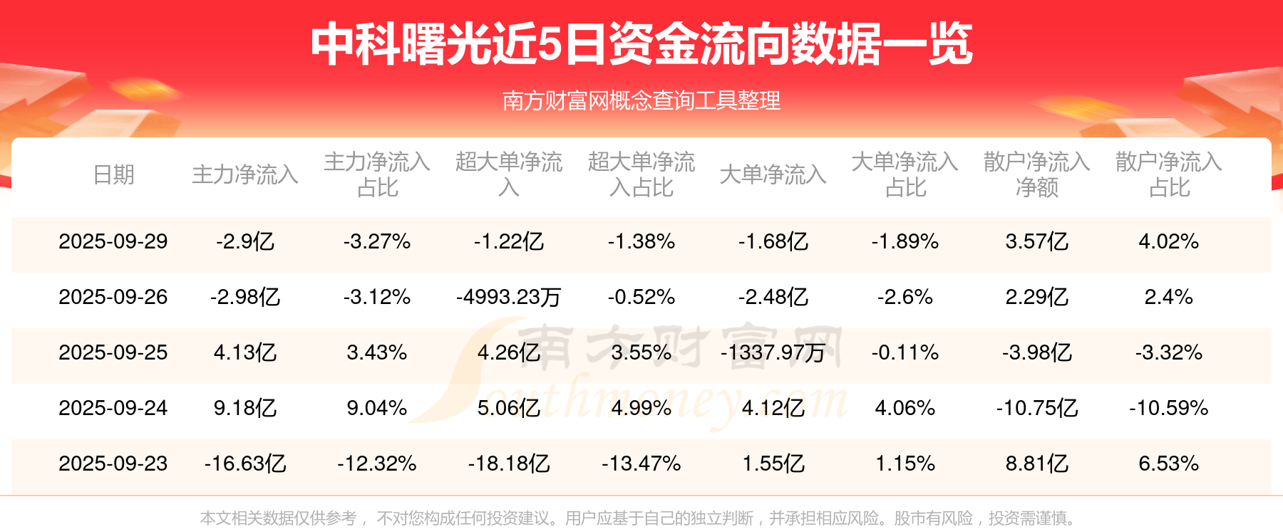 9月29日消息,中科曙光主力凈流出2.9億元,超大單凈流出1.22億元,散戶凈流入3.57億元。