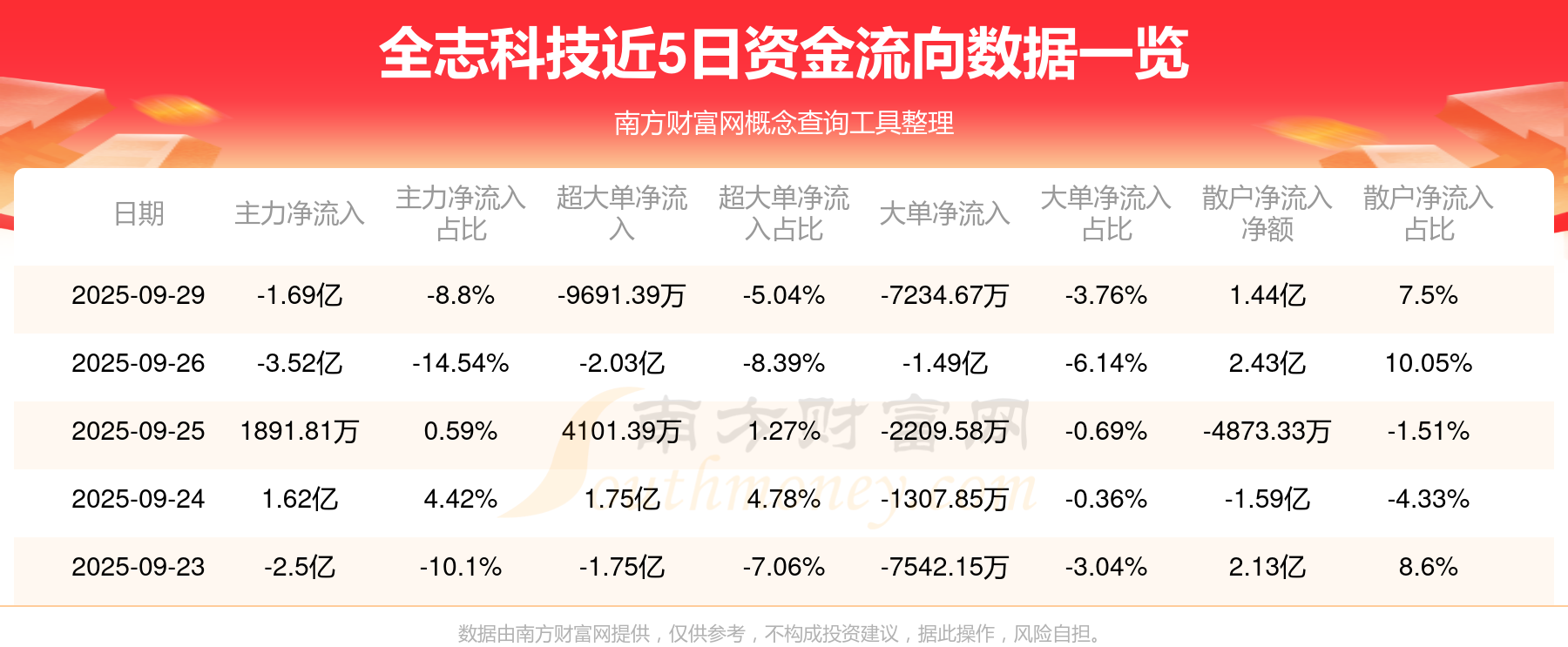 9月29日消息,全志科技主力資金凈流出1.69億元,超大單資金凈流出9691.39萬元,散戶資金凈流入1.44億元。