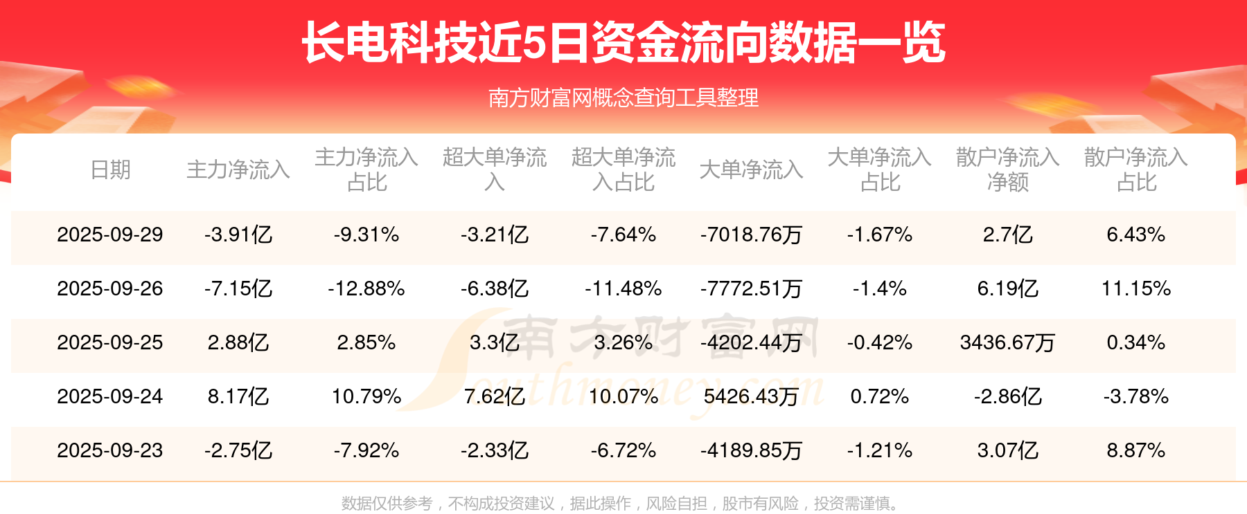 9月29日消息,長(zhǎng)電科技主力凈流出3.91億元,超大單凈流出3.21億元,散戶凈流入2.7億元。