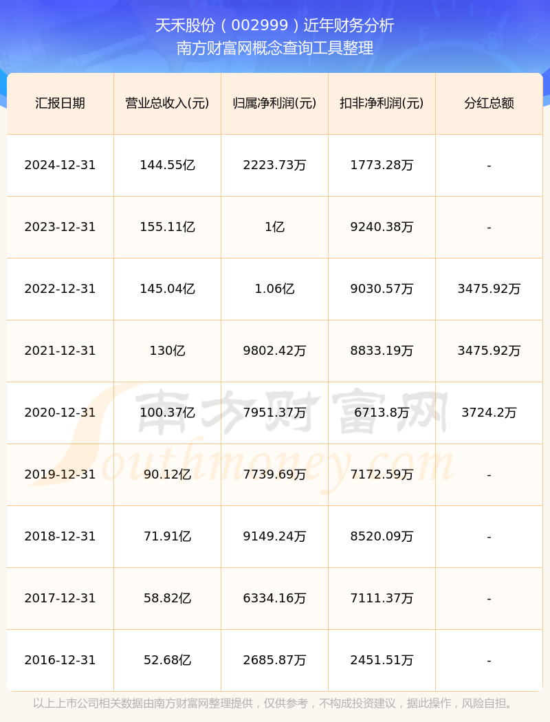 天禾股份公司2024年實現(xiàn)營收144.55億元,凈利潤2223.73萬元,毛利率5.57%。