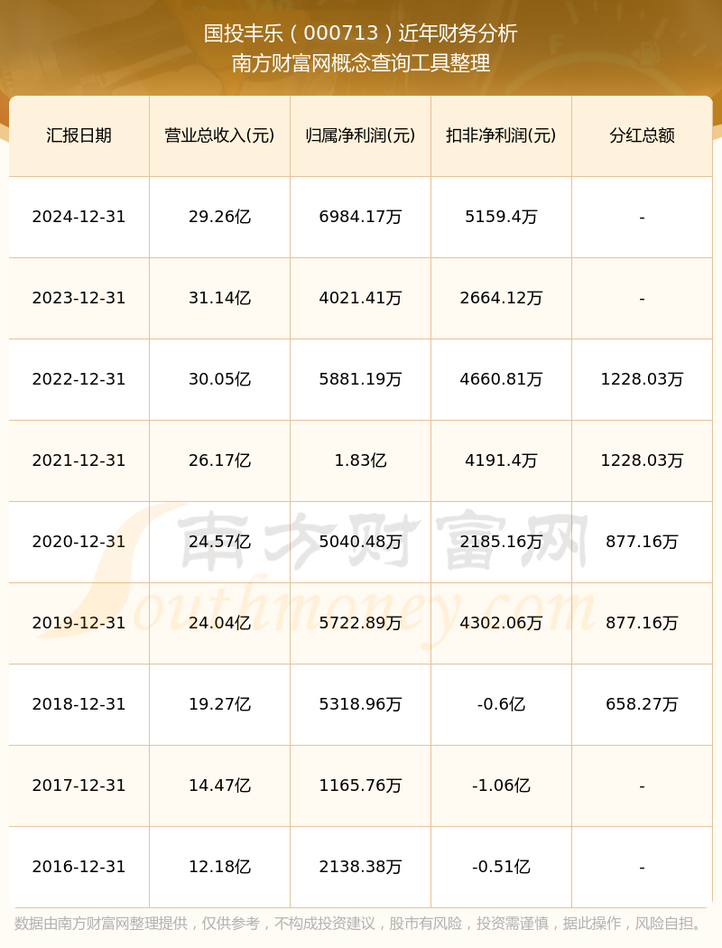 國投豐樂公司2024年實(shí)現(xiàn)營業(yè)收入29.26億元,同比增長-6.03%;凈利潤6984.17萬元,同比增長73.67%;毛利率15.74%。