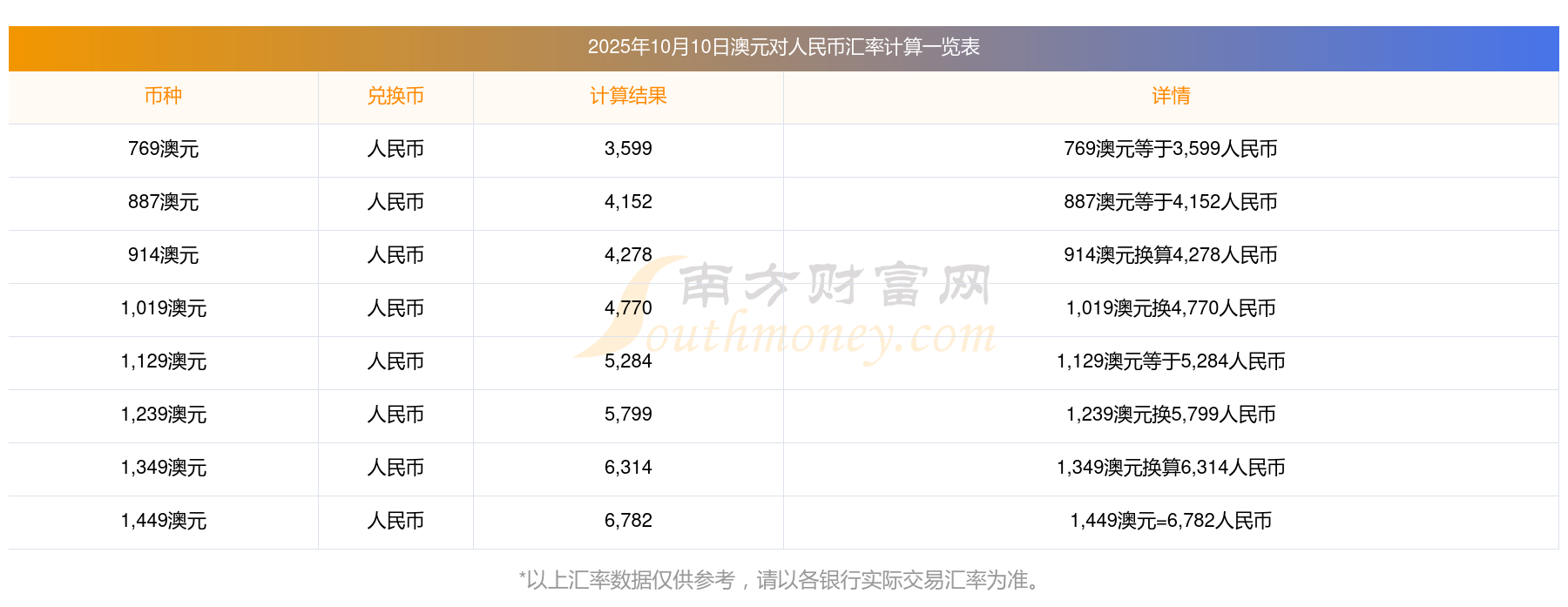 1澳元對人民幣多少元?澳大利亞元匯率中間價10-10