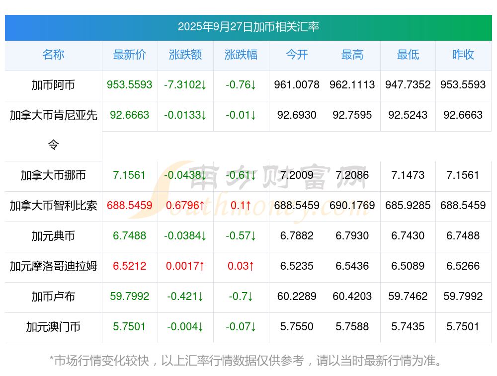 今日匯率查詢:17加幣兌換丹幣匯率行情? 2025年9月27日