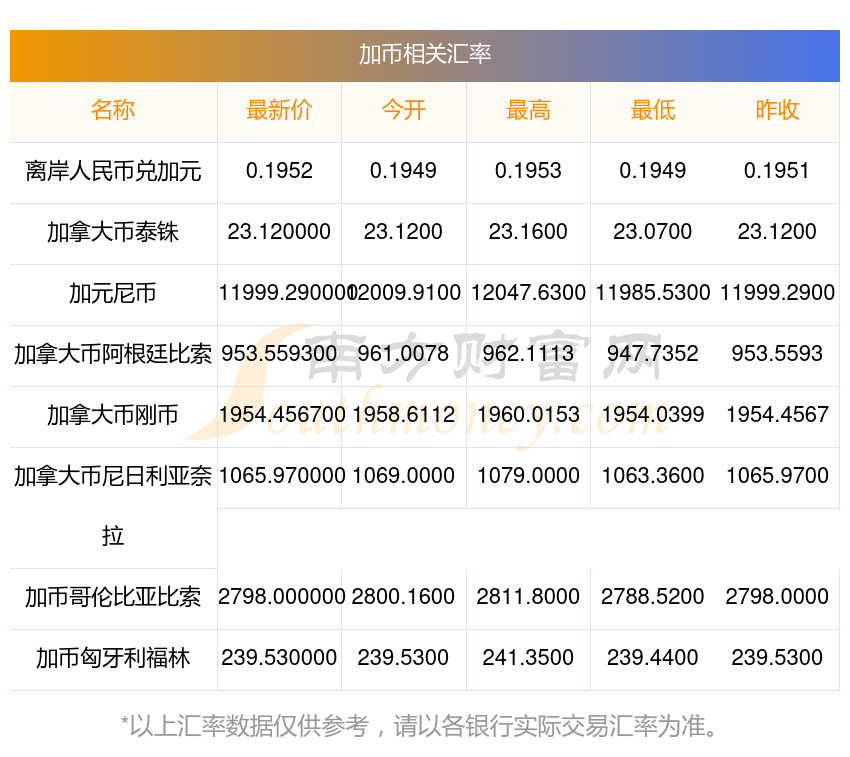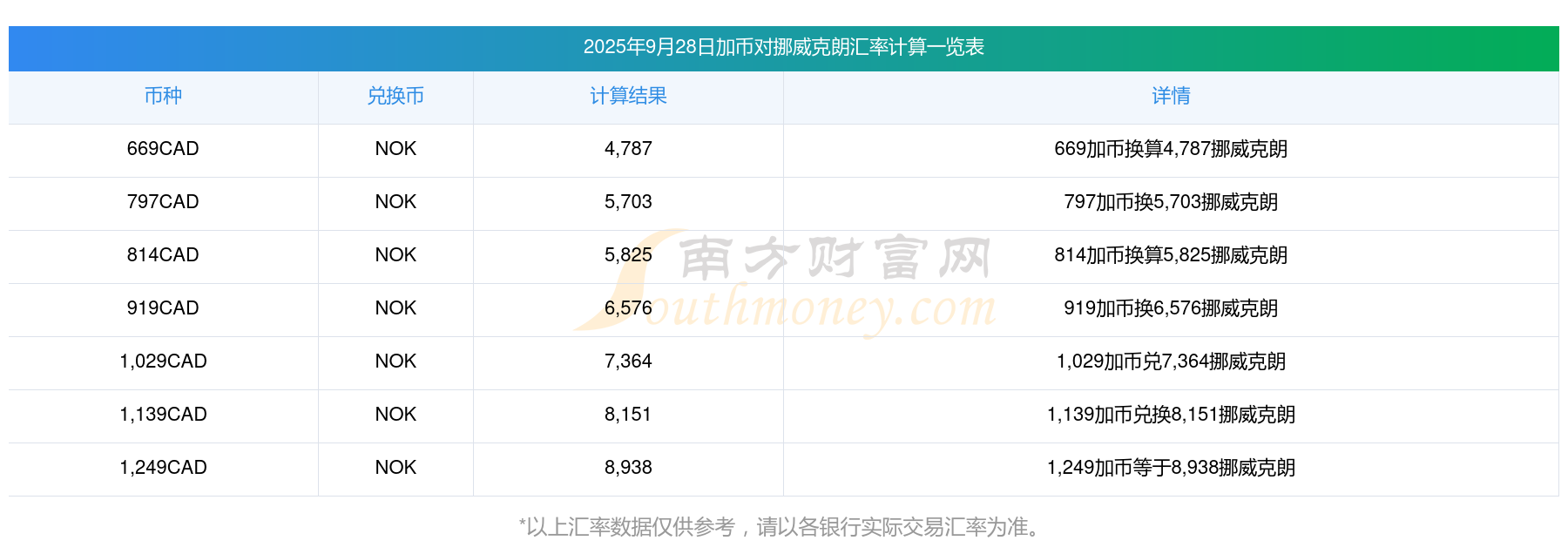 今天加幣購(gòu)匯查詢:今天加幣對(duì)挪威克朗匯率是多少?2025/09/28