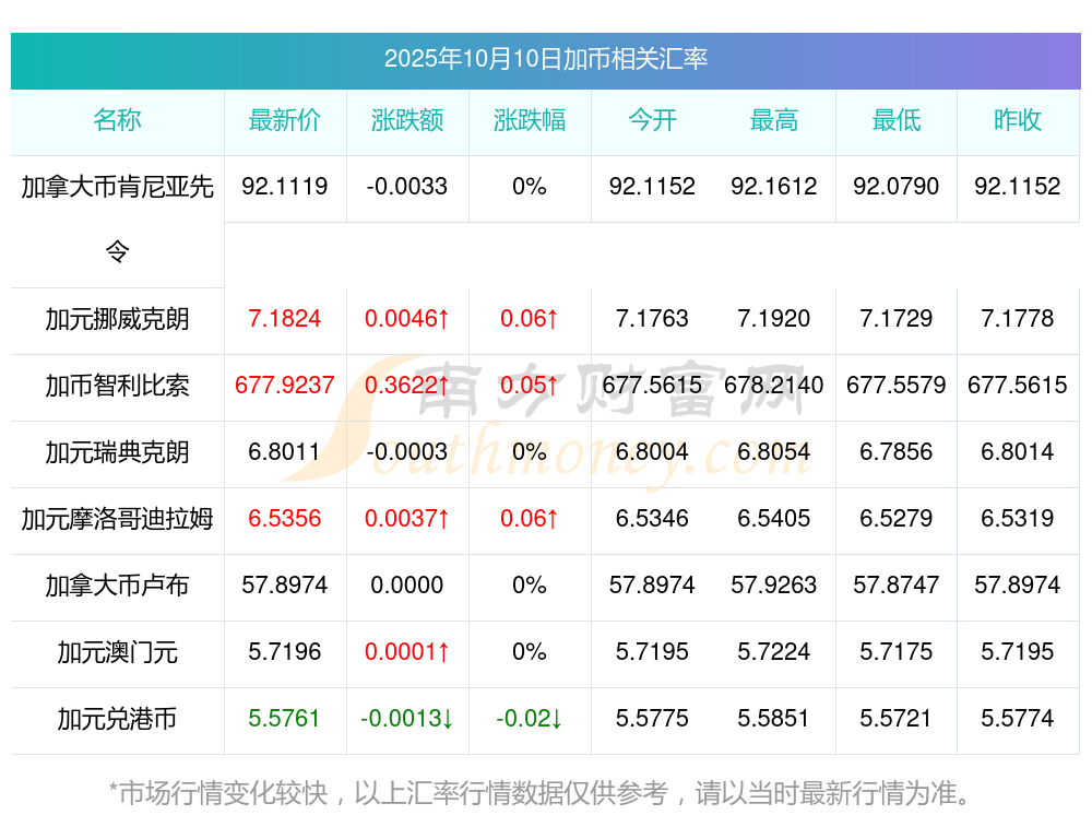 2025年10月10日加幣相關(guān)匯率查詢(xún)