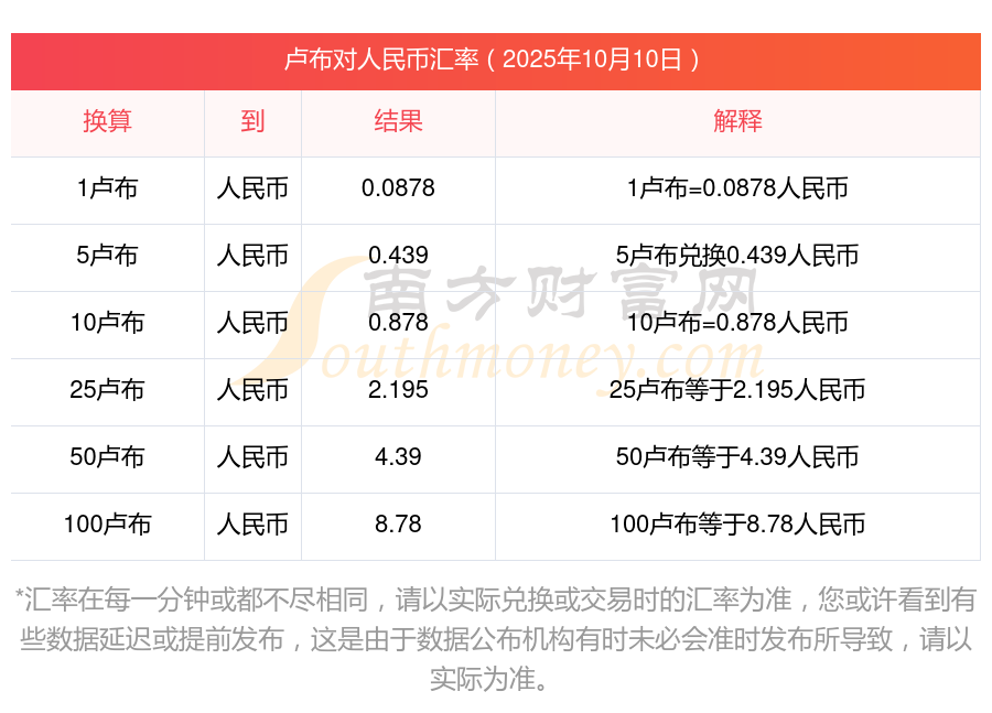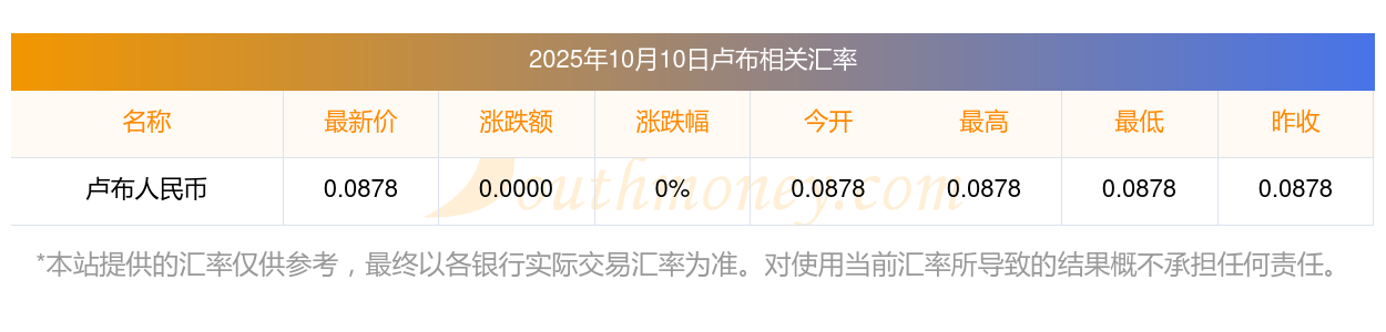 8303 RUB 兌 CNY(盧布對(duì)人民幣)匯率查詢(2025-10-10)