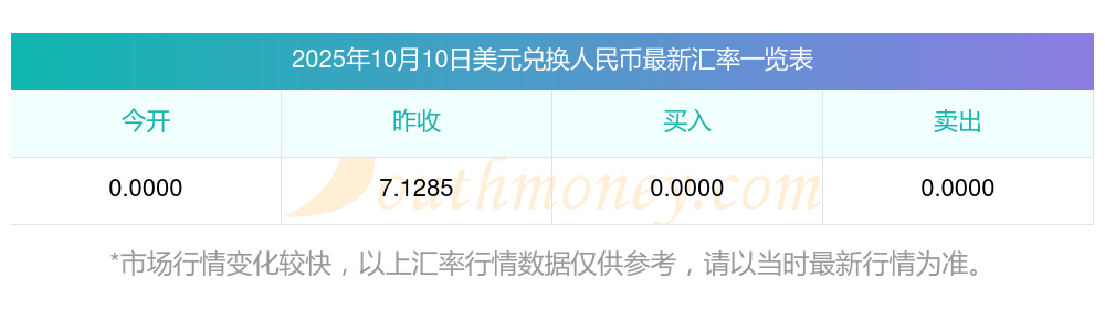 2025年10月10日美元匯價(jià):4美元兌人民幣匯價(jià)表