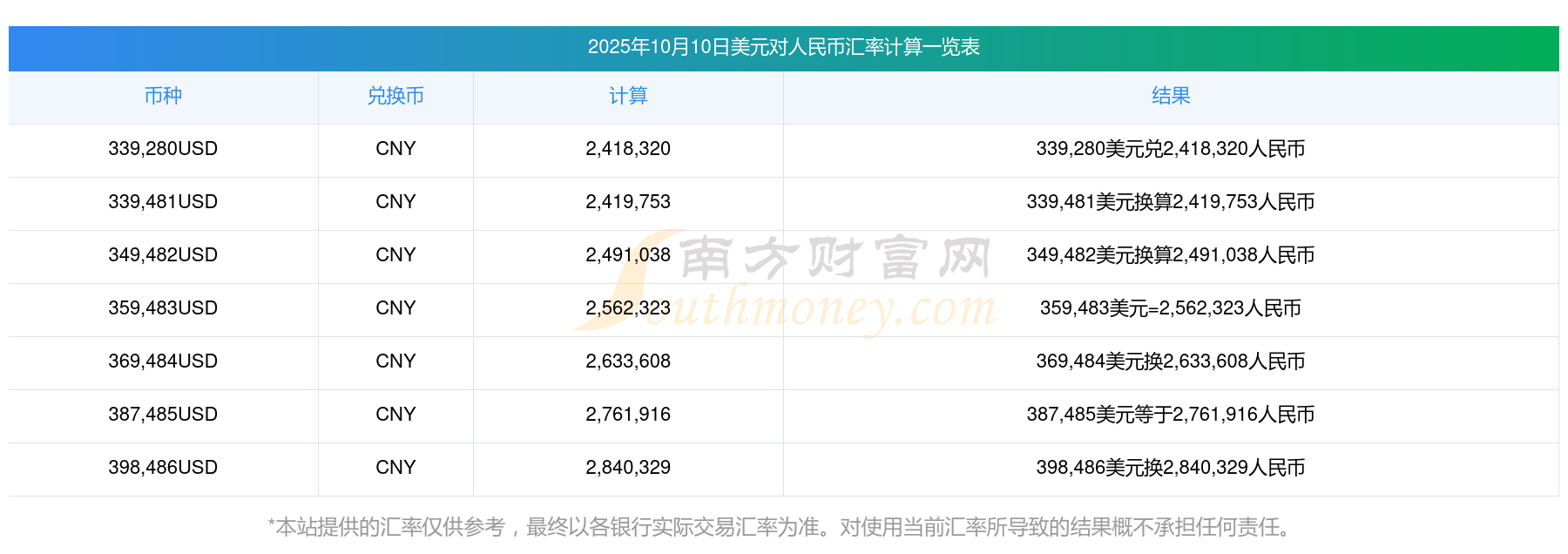 人民幣匯率中間價(jià)美元今天最新10月10日