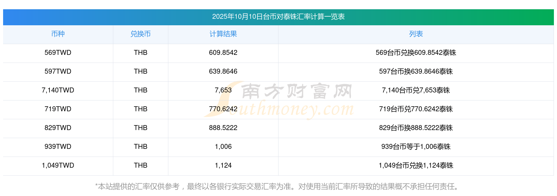 南方財(cái)富網(wǎng)為您提供臺幣對泰銖匯率最新價格詳情。