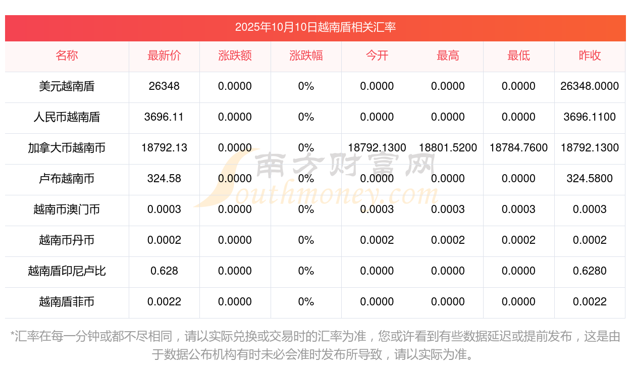 2025年10月10日越南盾相關(guān)匯率查詢