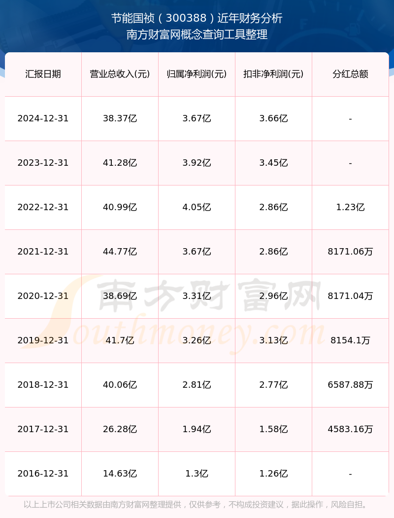 節(jié)能國(guó)禎歷年分紅派息情況如下表所示: