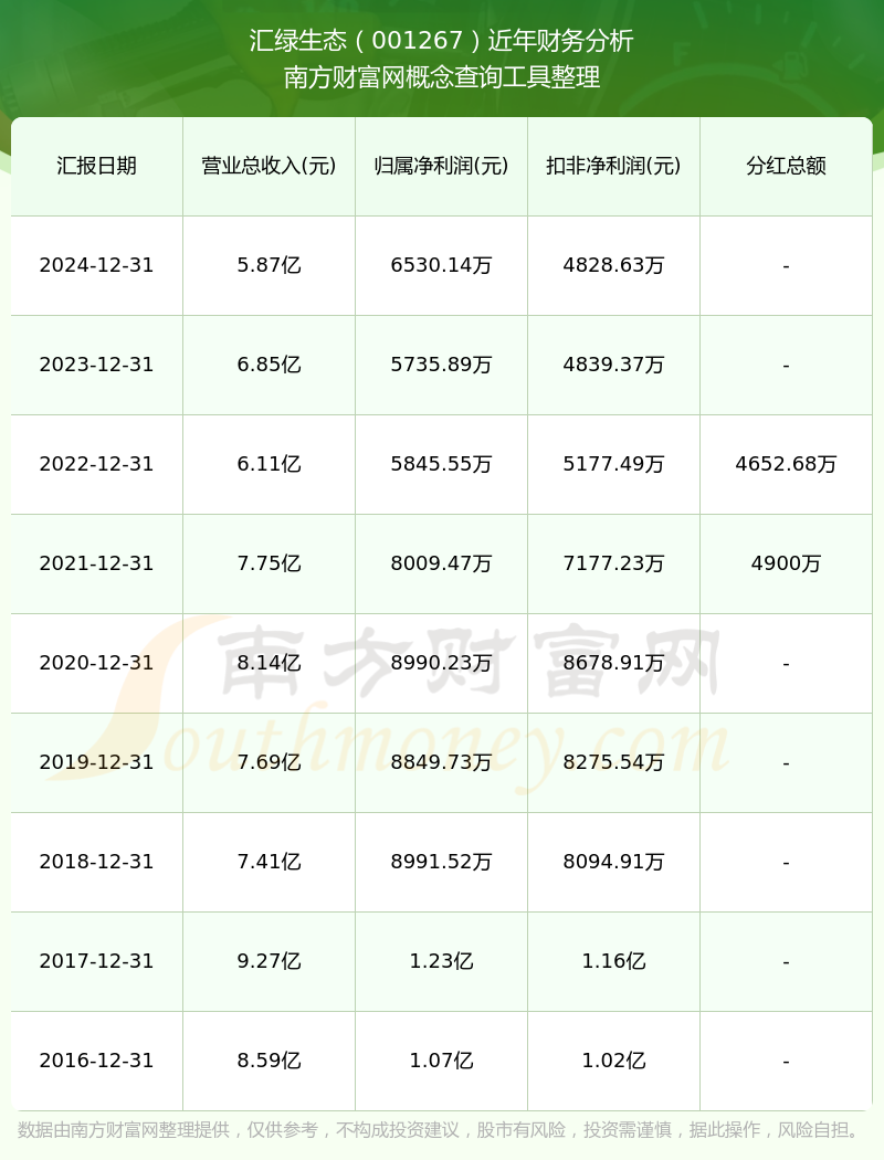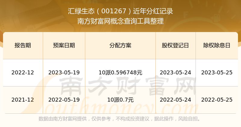 匯綠生態(tài)最新一次公布的分紅方案:10派0.596748元。