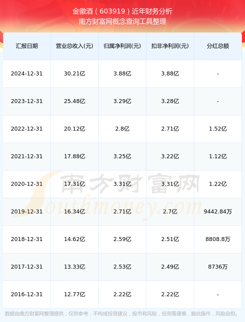 金徽酒歷年分紅派息情況如下表所示: