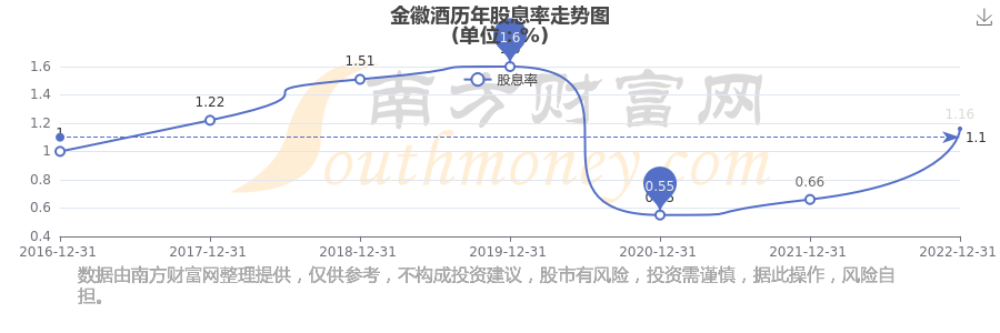 金徽酒歷年股息率走勢(shì)如下圖: