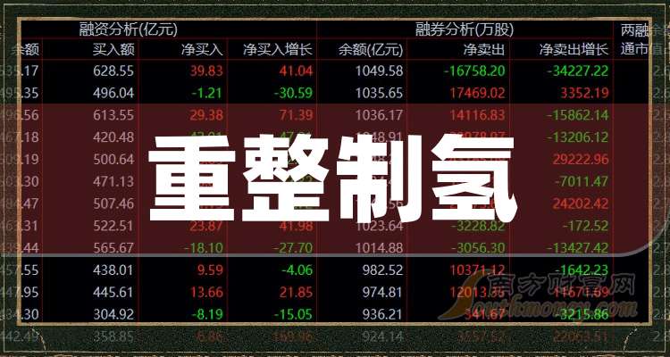 據(jù)南方財(cái)富網(wǎng)概念查詢工具數(shù)據(jù)顯示,重整制氫題材有: