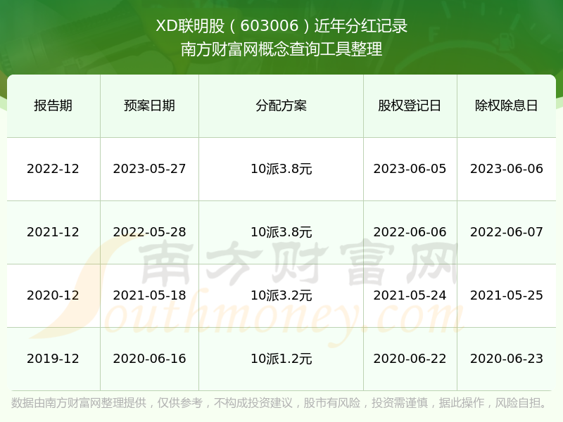 XD聯(lián)明股最新一次公布的分紅方案為10派3.8元。本次權(quán)益分派股權(quán)登記日為2023年6月5日,除權(quán)除息日為2023年6月6日,派息日為2023年6月6日。