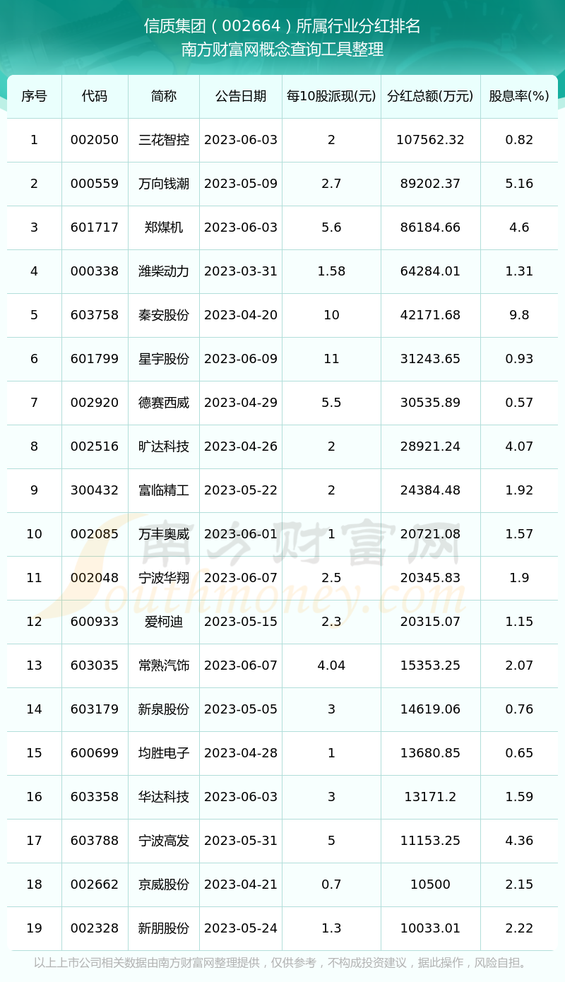 二、信質(zhì)集團(tuán)002664行業(yè)分紅排名
