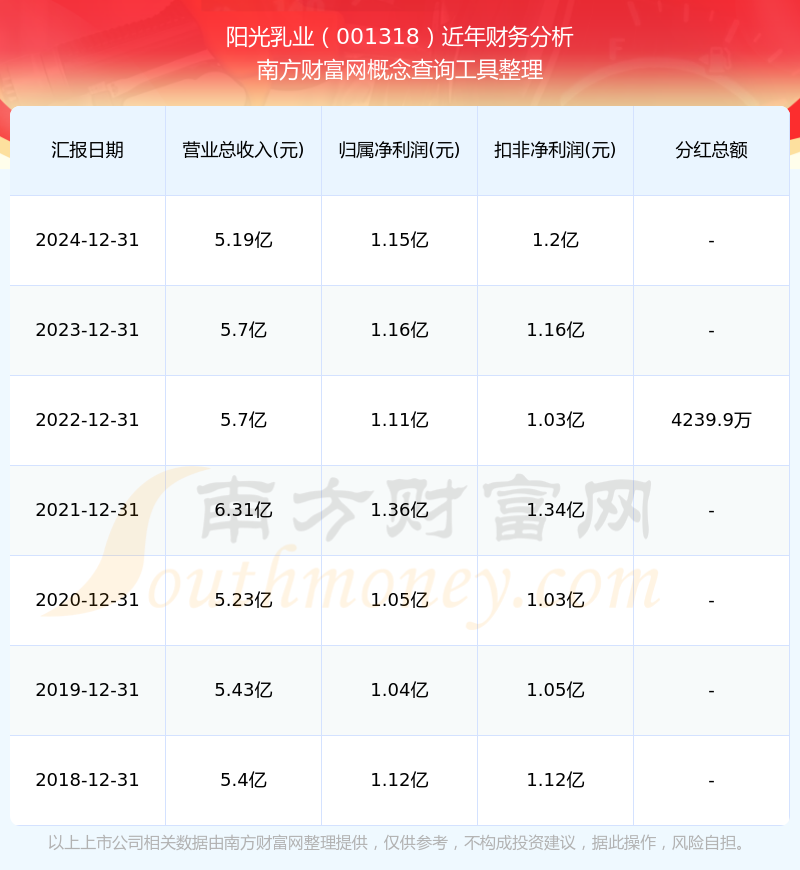 陽(yáng)光乳業(yè)公司2024年實(shí)現(xiàn)營(yíng)收5.19億元,凈利潤(rùn)1.15億元,毛利率37.85%。