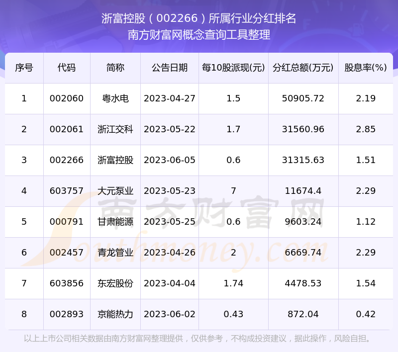按照南方財富網(wǎng)趨勢選股系統(tǒng)統(tǒng)計,浙富控股所屬行業(yè)為節(jié)能環(huán)保行業(yè),節(jié)能環(huán)保行業(yè)分紅排名情況如下表: