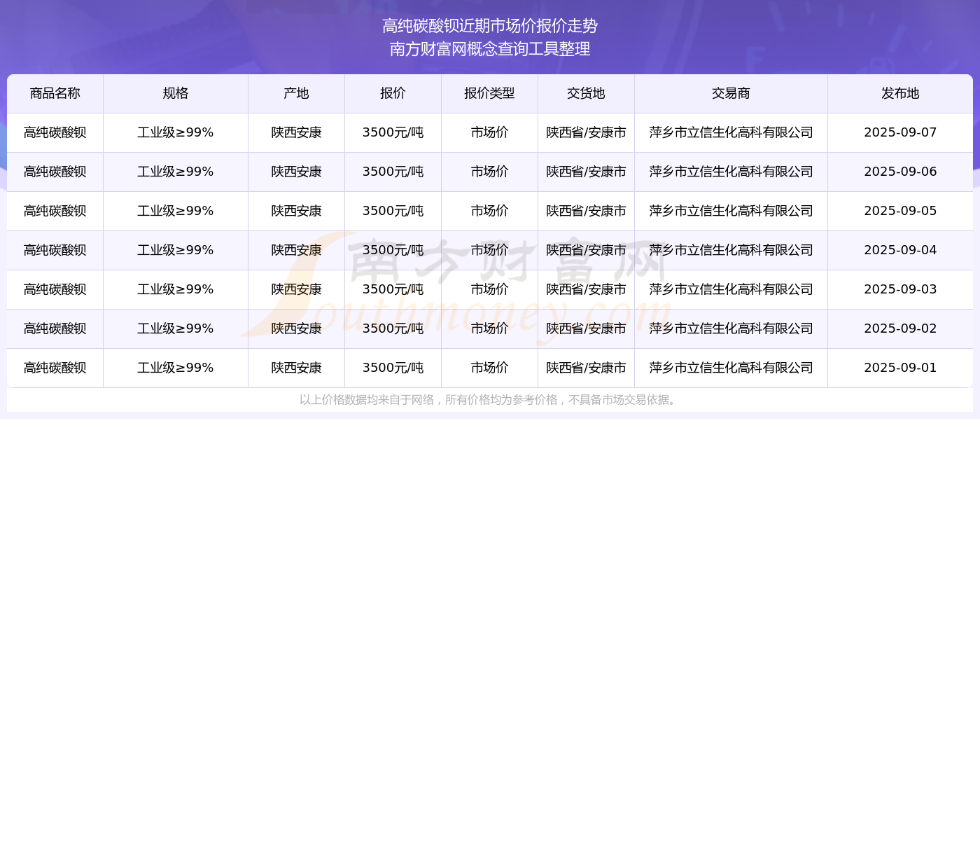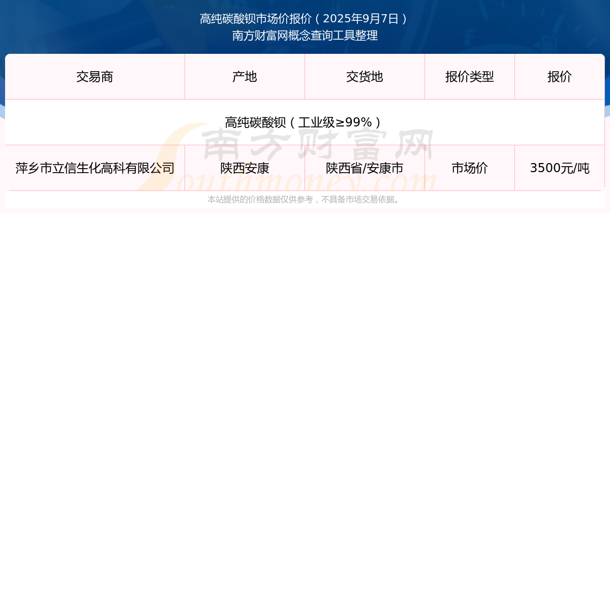 高純碳酸鋇市場價報價行情(2025年9月7日)