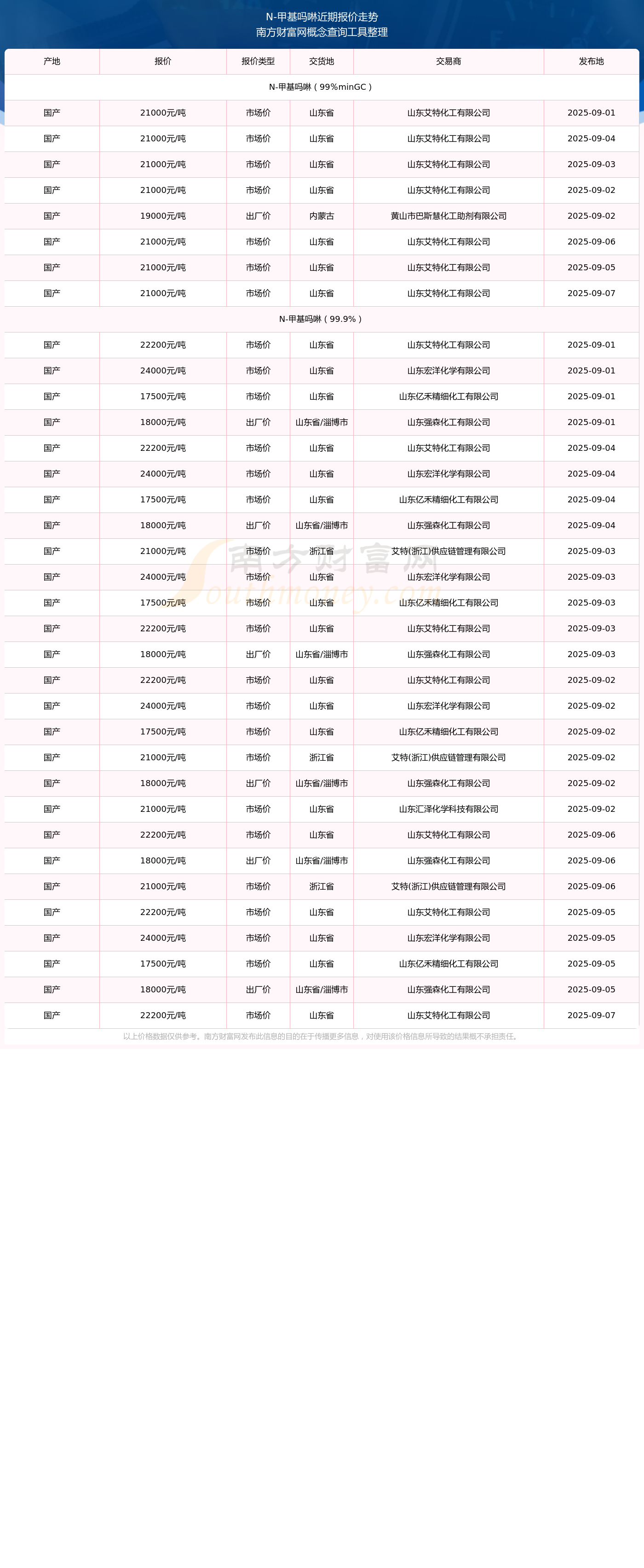 2025年9月7日N-甲基嗎啉報(bào)價(jià)行情及近期報(bào)價(jià)走勢