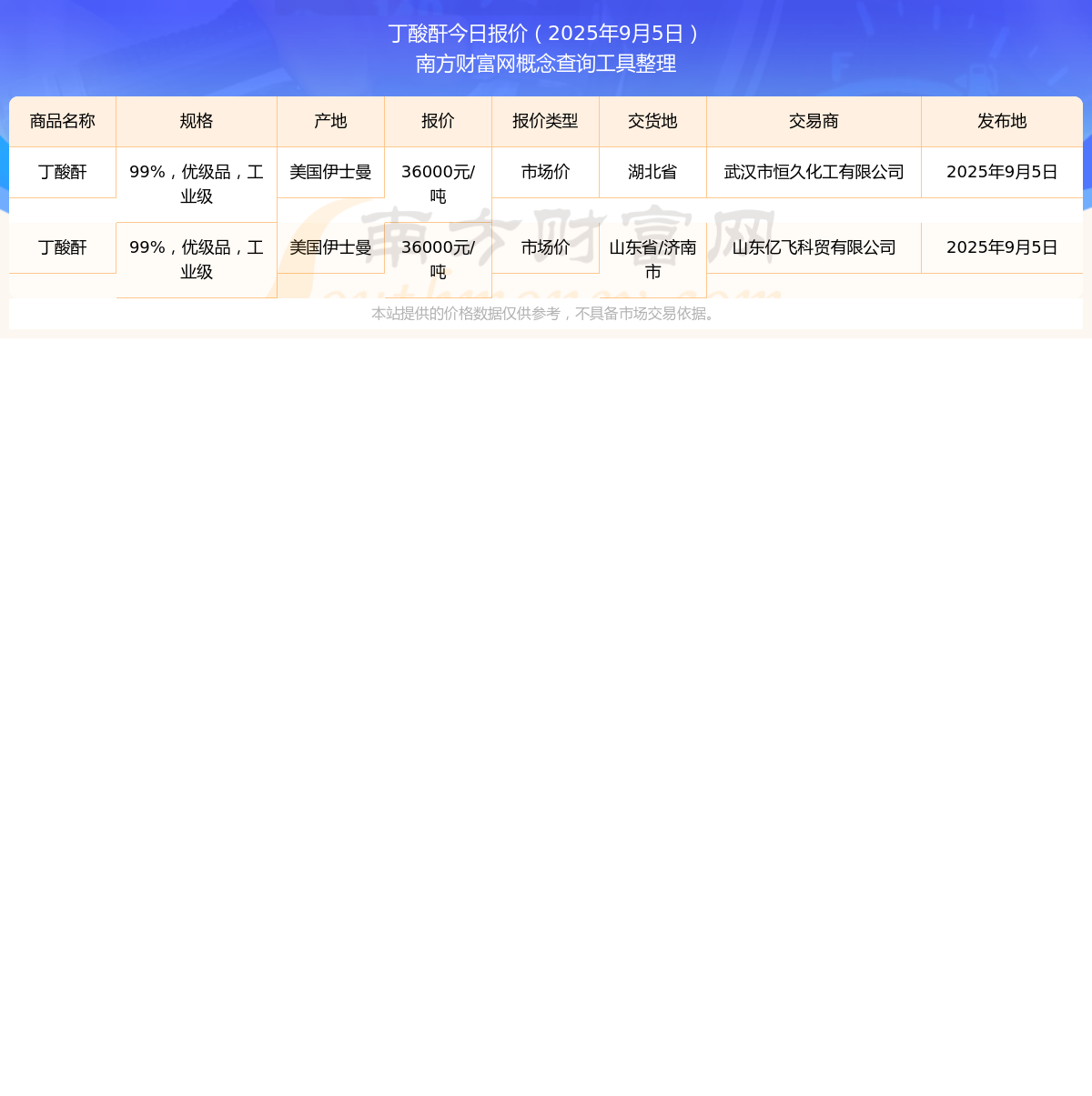2025年9月5日丁酸酐市場價報價多少_近期價格走勢