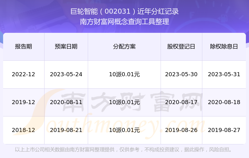 一、巨輪智能(002031)股票分紅記錄
