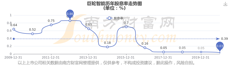 近年巨輪智能年度股息率走勢(shì)如下圖: