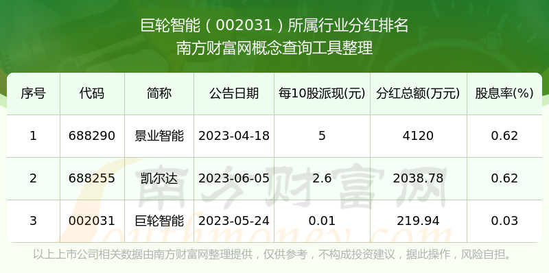 二、巨輪智能002031行業(yè)分紅排名