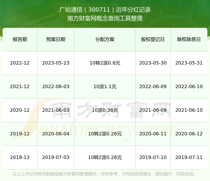 近年廣哈通信分紅派息情況如下表所示: