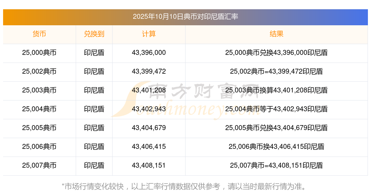 南方財富網為您提供典幣對印尼盾匯率最新價格詳情。