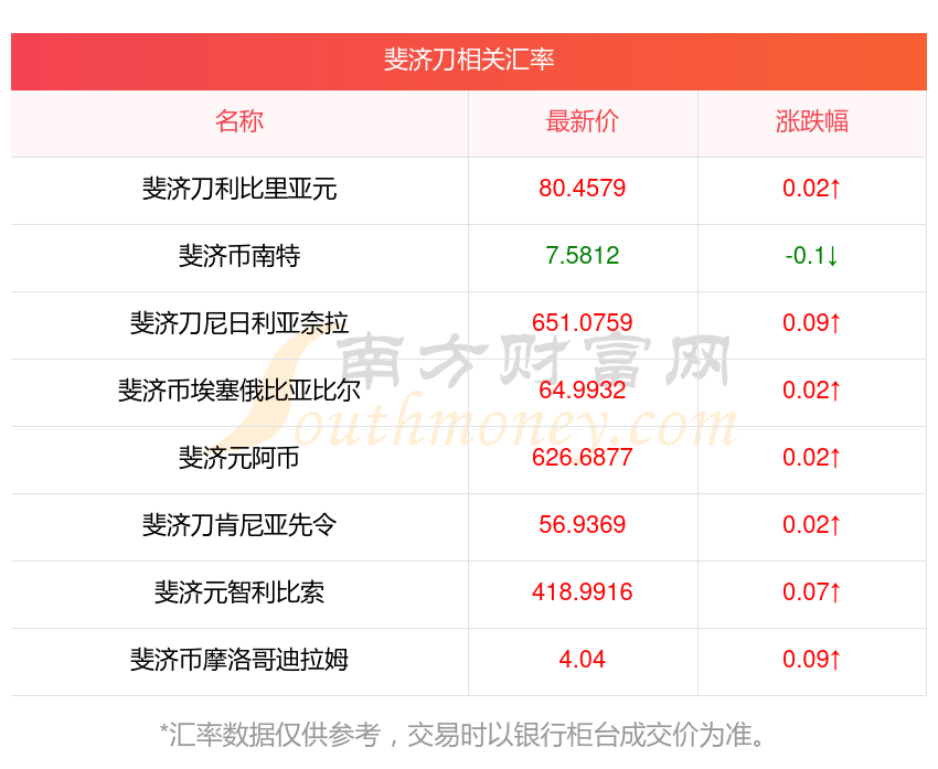 南方財(cái)富網(wǎng)為您提供斐濟(jì)刀對尼日利亞奈拉匯率最新價(jià)格詳情。