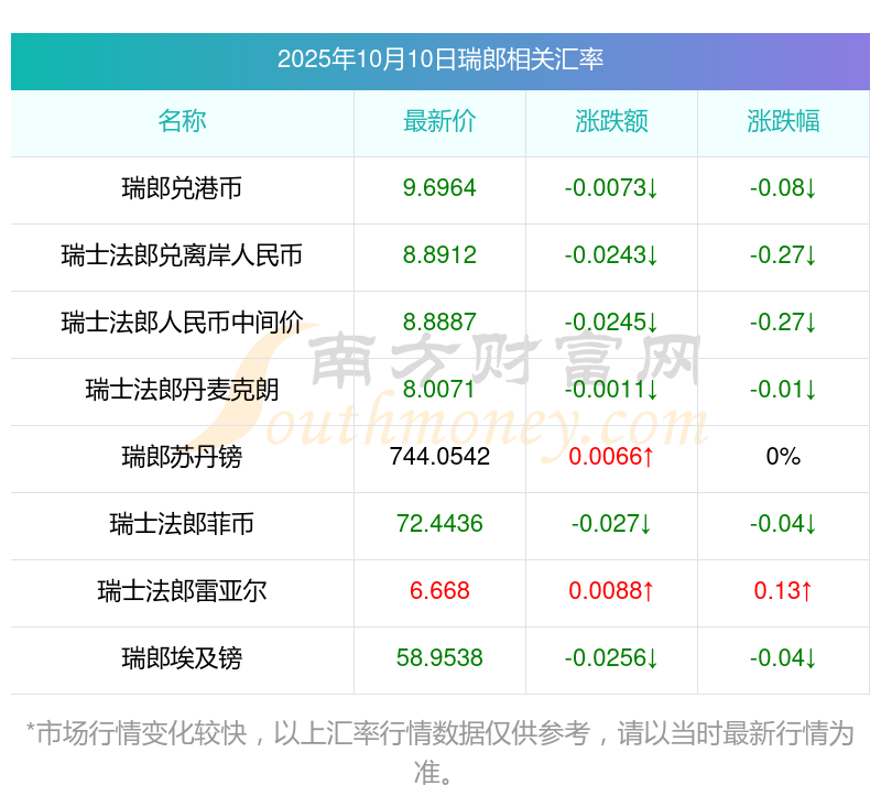 2025年10月10日瑞郎相關(guān)匯率查詢