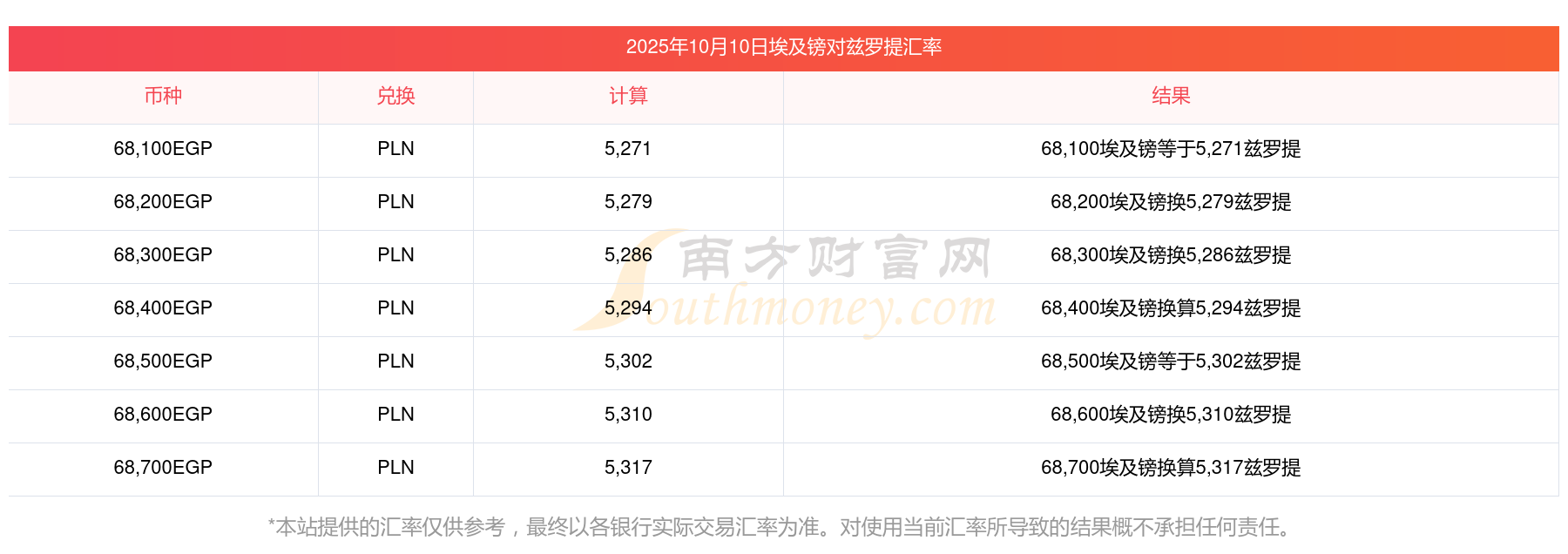 埃及鎊對茲羅提匯率今日實時匯率查詢10-10