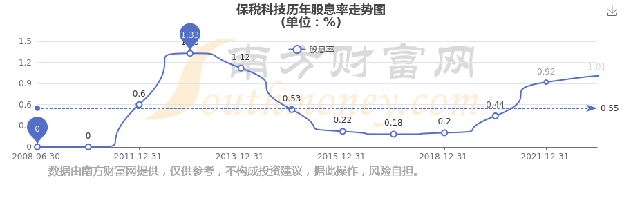 近年保稅科技年度股息率走勢如下圖: