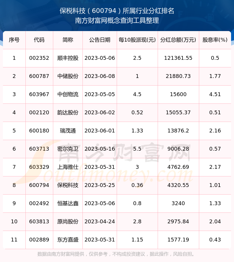 二、保稅科技600794行業(yè)分紅排名