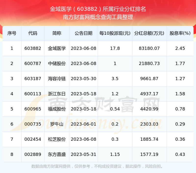 二、金域醫(yī)學603882行業(yè)分紅排名