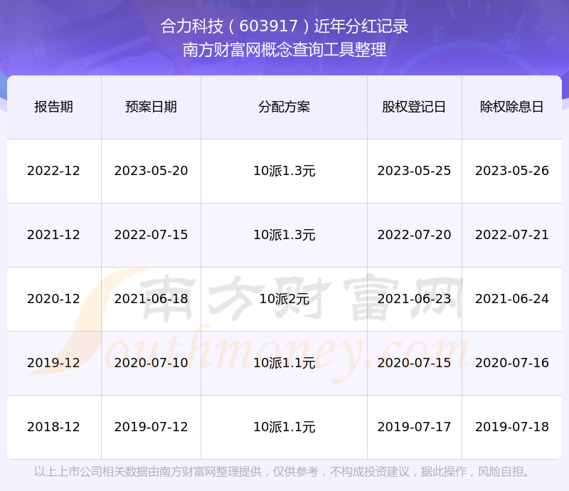 合力科技最新一次公布的分紅方案:10派1.3元。