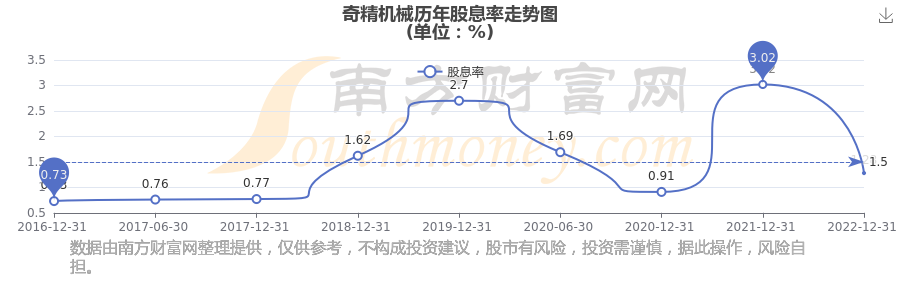 奇精機(jī)械歷年股息率走勢(shì)如下圖: