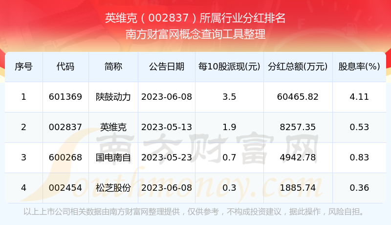 按照南方財(cái)富網(wǎng)趨勢(shì)選股系統(tǒng)統(tǒng)計(jì),英維克所屬行業(yè)為溫控設(shè)備行業(yè),溫控設(shè)備行業(yè)分紅排名情況如下表: