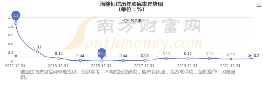 近年潛能恒信年度股息率走勢(shì)如下圖: