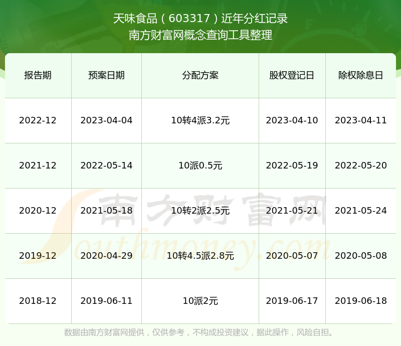 天味食品最新一次公布的分紅方案為10轉(zhuǎn)4派3.2元。本次權(quán)益分派股權(quán)登記日為2023年4月10日,除權(quán)除息日為2023年4月11日,派息日為2023年4月11日。