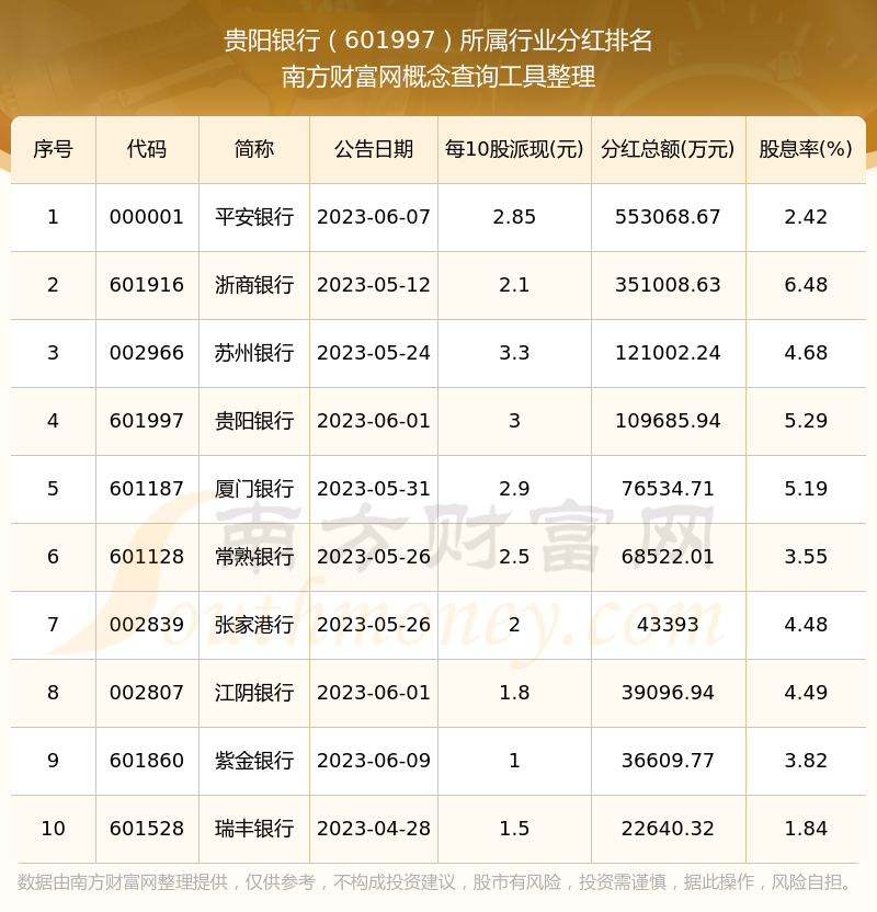 二、貴陽銀行601997行業(yè)分紅排名