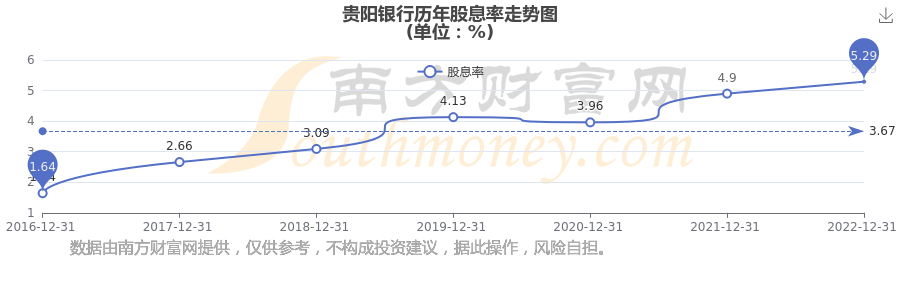 近年貴陽銀行年度股息率走勢如下圖: